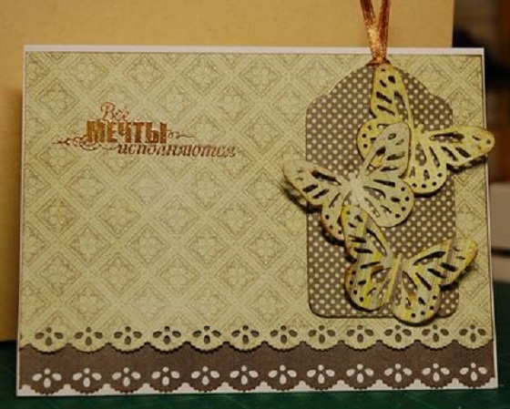 Кто же не любит бантики! Открытки с ними выглядят элегантными и нежными. Использовать можно ленточки разных цветов и фактуры. Большие и маленькие, крупные и мелкие, пушистые и не очень. Все они выглядят мило и приветливо. Мастер-классы по изготовлению бантиков очень многим приходятся по душе. Их также лучше делать про запас, а в порыве вдохновения будет возможность выбрать.