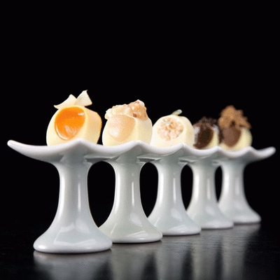 Шеф Грант Эшатс подает пять кусочков пальмы с пятью разными начинками, варьирующимися от ванильного пудинга до пюре из трюфеля с ржаным хлебом.