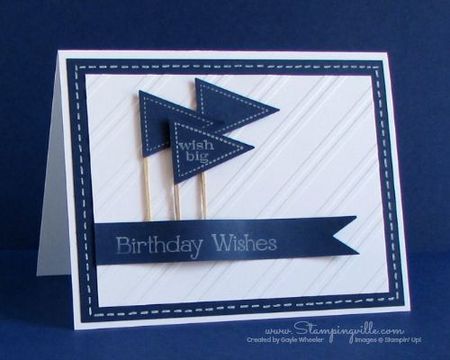 Открытка для мужчины своими руками, индивидуальное поздравление с днем рождения с синими флажками и лентой.