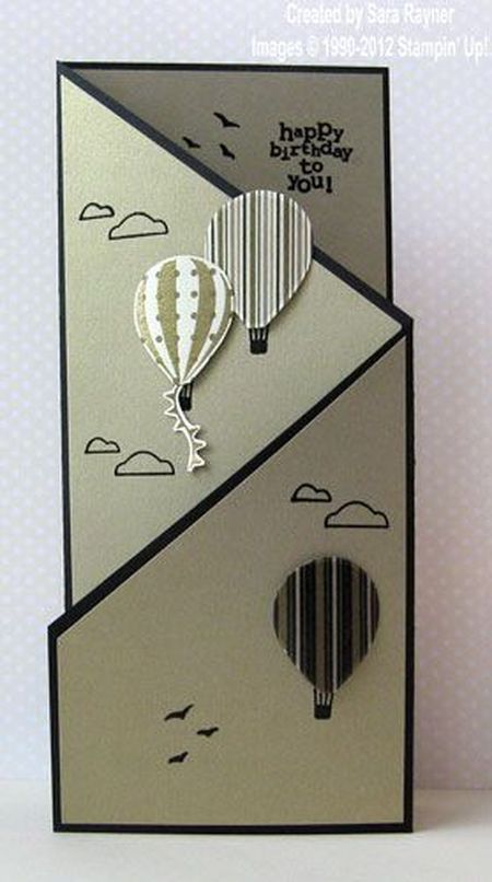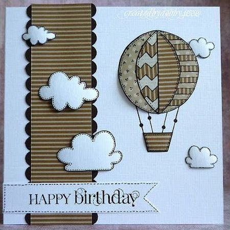 Открытка для мужчины своими руками, индивидуальное поздравление с днем рождения с летящим сквозь облака воздушным шаром.