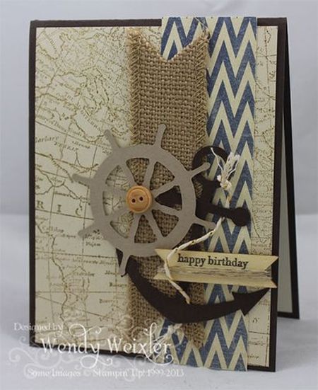 И еще одна открытка для мужчины своими руками, индивидуальное поздравление с днем рождения с морскими аксессуарами.