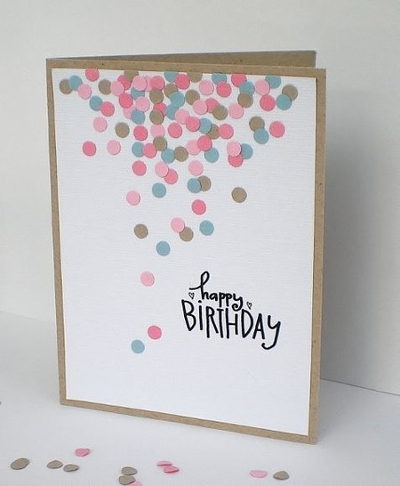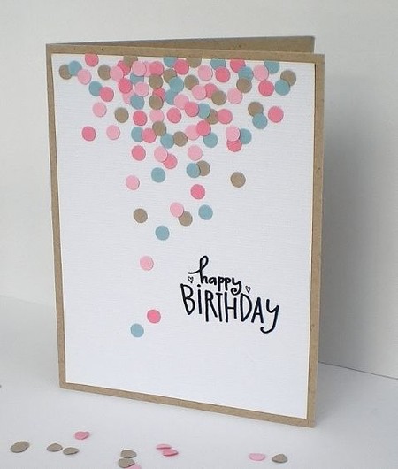 Конфетти — отличный декор для вашей открытки. Их лучше делать с помощью обычного дырокола или специального фигурного дырокола. Так и быстрее и красивее.