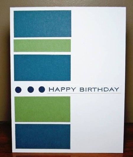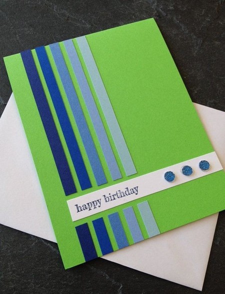 Простая открытка своими руками с цветными прямоугольниками и маленькими кругами.