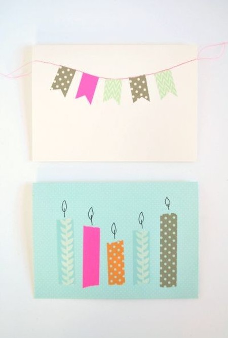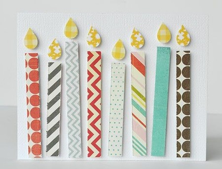 А эту милую открытку сделать проще простого — декоративный скотч здесь главный элемент.