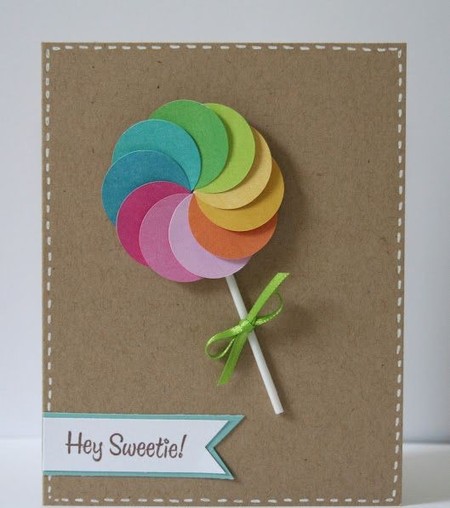 Открытка декорирована простыми разноцветными кружками. Следите, чтобы их не было слишком много :-)