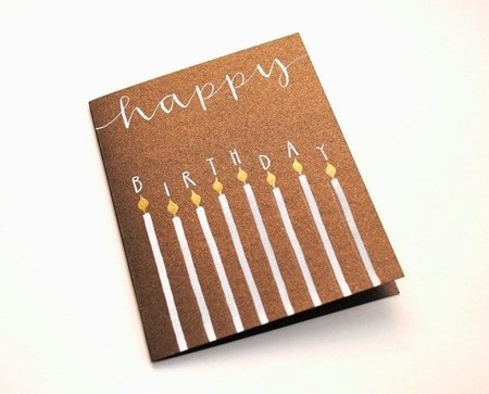 Свечи — главный декор на дне рождении, поэтому эта открытка особенно актуальна. А золотой цвет делает ее шикарной.