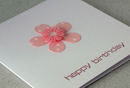 Милая открытка с днем рождения с одним маленьким и нежным цветком.