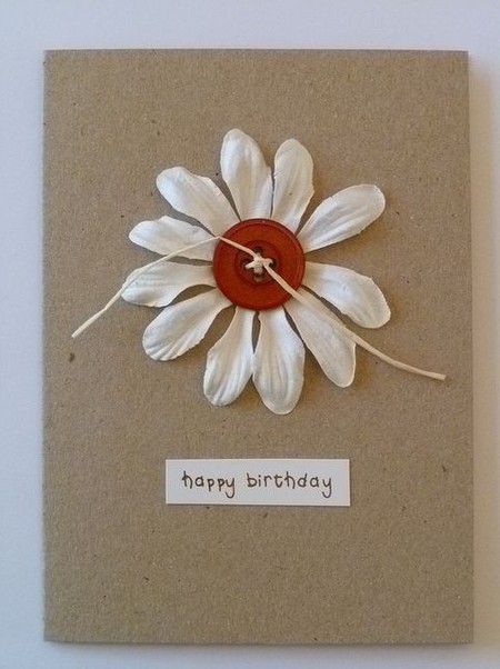 Обычная открытка на крафте с цветком. Здесь можете посмотреть как делать цветы своими руками.