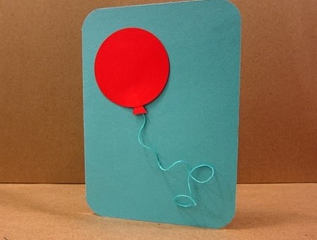 Простая и воздушная открытка, она подойдет для подарка не только детям, но и взрослым. Зафиксируйте ниточку клеем, чтобы она не болталась.