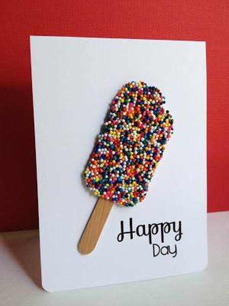 Милые колпачки украшают эту оригинальную открытку своими руками на день рождения.