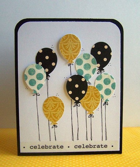Объемные элементы делают открытку более реалистичной и интересной. А все, что вам понадобится — это объемный двухсторонний скотч и ваши шары уже летят!