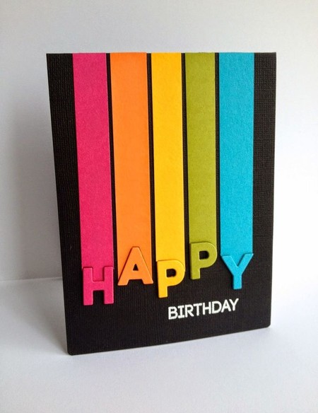 Очень простая открытка своими руками, декорированная разноцветной надписью.