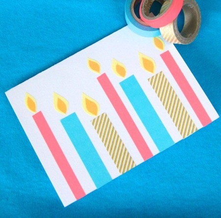 Еще одна оригинальная открытка своими руками, декорированная цветной клейкой лентой.