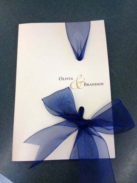 Свадебная открытка, оформленная красной атласной лентой своими руками.