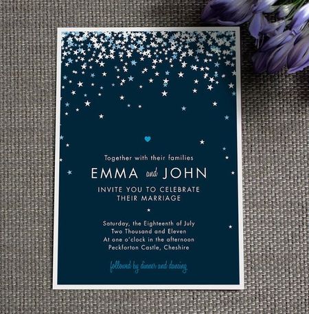 Достаточно простая свадебная открытка со звездочками на синей бумаге своими руками.