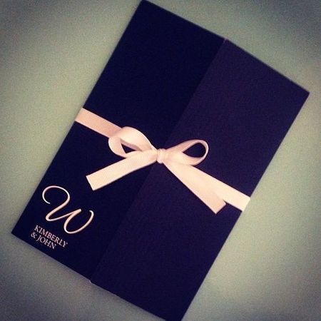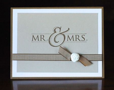 Пример свадебной открытки в стиле минимализма своими руками с маленькой розочкой и лентой.