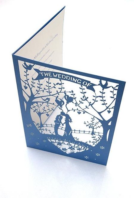 Свадебная открытка на синей бумаге своими руками с использованием техники вырезания.