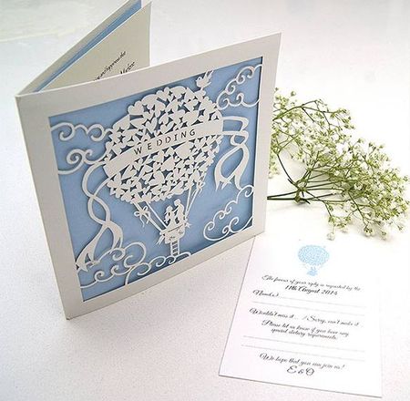 Свадебная открытка на голубой и белой бумаге своими руками двухслойная в технике вырезания.
