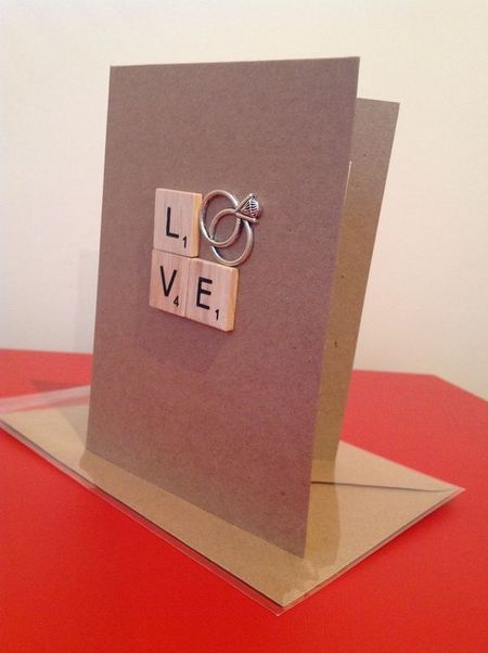 Свадебная открытка с буквами и колечками своими руками на крафтовой бумаге.