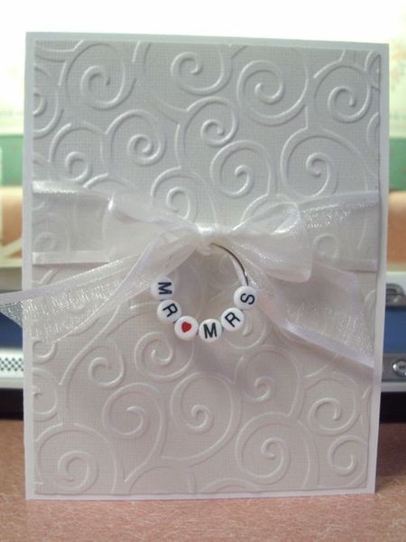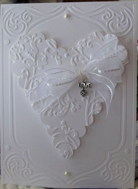 Свадебная открытка с лентой своими руками и объемными узорами.