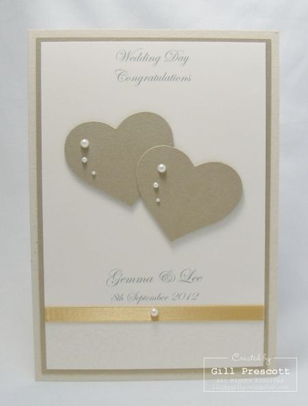 Свадебная открытка с золотой ленточкой своими руками и сердечками.