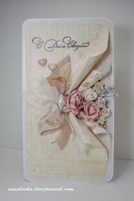 Свадебная открытка с лентами своими руками и невестой.