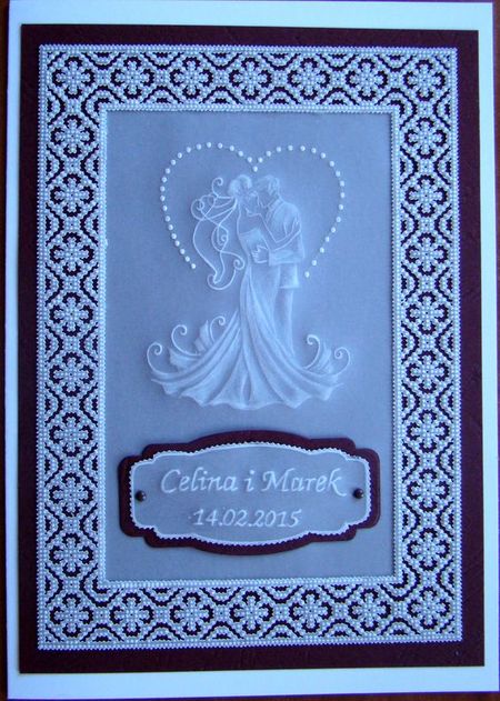 На свадебной открытке изображение костюма жениха и свадебного платья невесты своими руками.