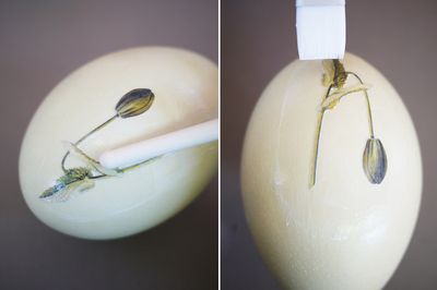 - по окончанию работы смазать клеем все яйцо, целиком