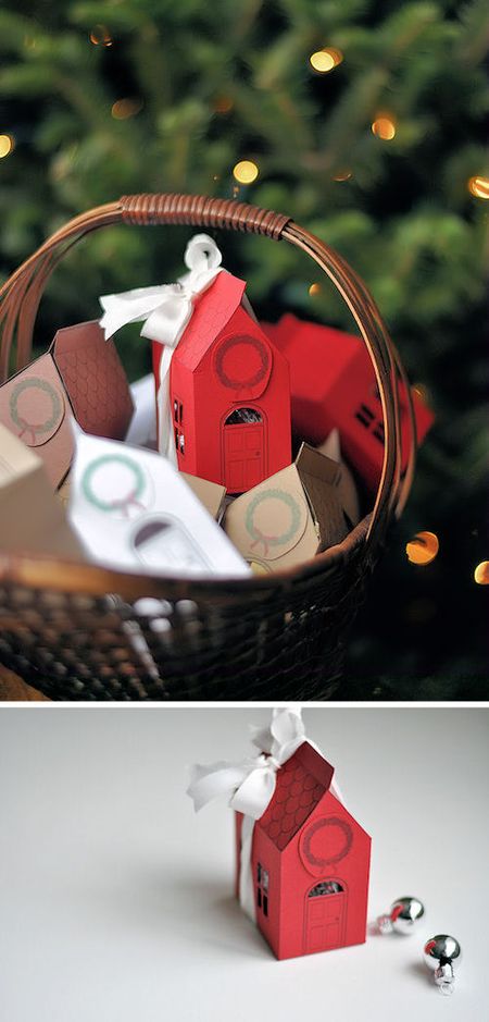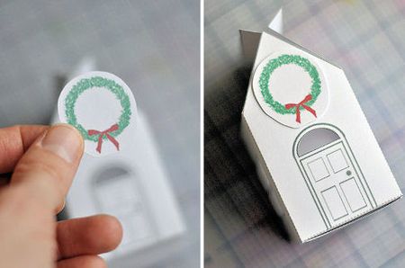 Скачиваем шаблон, вырезаем по нему венок и домик. Все дальнейшие шаги по изготовлению упаковки своими руками показаны подробно на фотографиях. Оставьте обязательно комментарий, если вы столкнетесь с трудностями или просто возникнет желание поделиться впечатлениями.