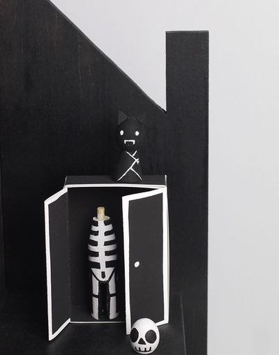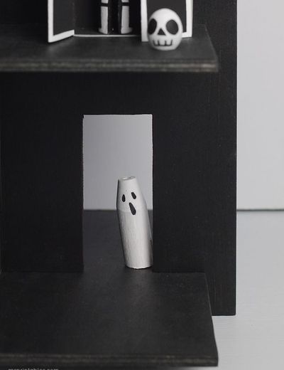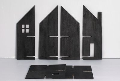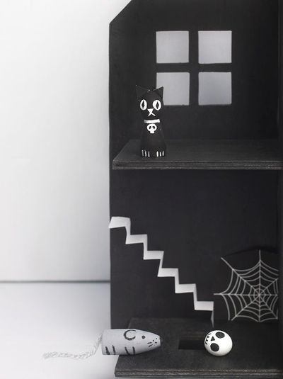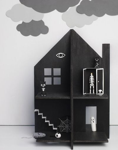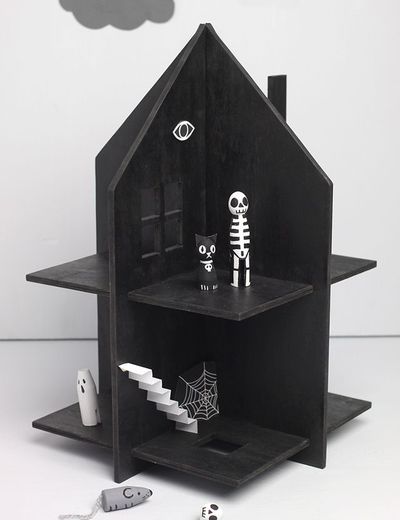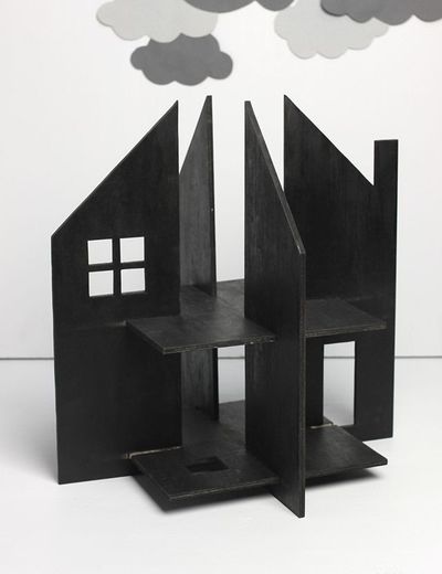 Конкретно этот домик мы изготовили из фанеры, которую покрасили потом в черный цвет, но вы можете выбрать любой материал, который вам больше понравиться или с каким будет удобнее работать.