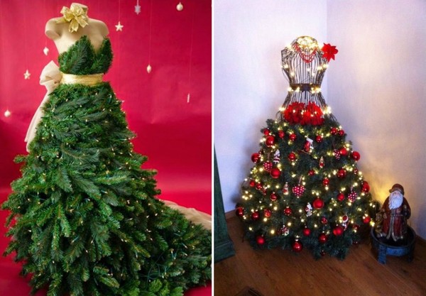 Елочки в виде женского платья — незабываемые и необычный декор! Такая елка подойдет для оформления не только дома, но и офисов и магазинов одежды. Такую красавицу в витрине точно никто не обойдет стороной!