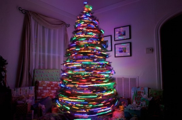 Весь секрет этой елочки во вращающемся механизме в основании елки. Гирлянды в этом случае используйте на батарейках. Такая елка, без сомнения, зрелище очень впечатляющее и волшебное.