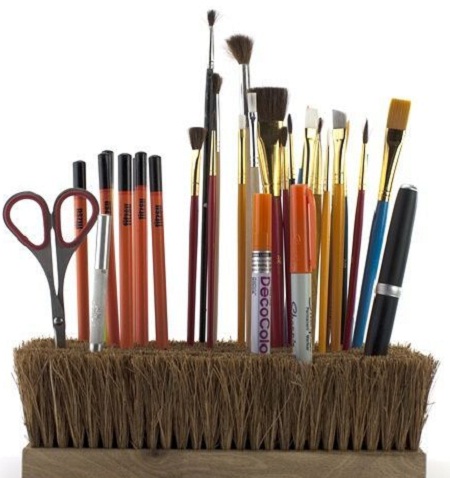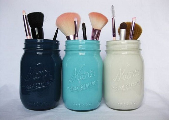 Такая идея хранения косметики, также может быть использована. Но для этого лучше приобрести новую щетку, а очень густую шерсть для удобства можно подстричь.
