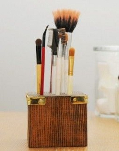 Такую коробочку можно идеально приспособить для хранения кистей, для этого в ней надо проделать отверстия. Такой органайзер своими руками отлично подойдет к любому интерьеру комнаты.