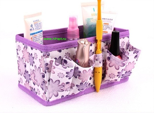 Такие текстильные органайзеры изготовленные своими руками достаточно удобны и обеспечивают хранение косметики. В них можно держать некоторые виды косметики.