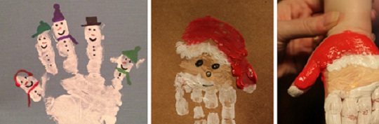 Такая эксклюзивная новогодняя открытка будет пользоваться большим успехом у бабушек и дедушек в качестве подарка, а малыши в ее создании с большим удовольствием примут участие! Для нее понадобится совсем немного материала: краски, фломастеры, а для основы плотная бумага.