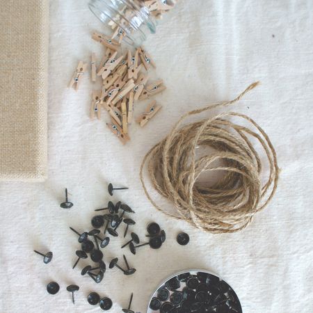 Затем наматываете нитку с лицевой стороны, закрепляя ее по краям, как показано на картинке ниже. Сильно не натягивайте ее, чтобы вы могли легко прикрепить к ней прищепки и повесить фотографию.