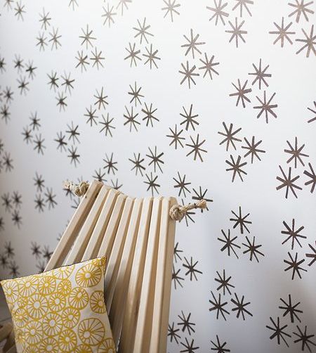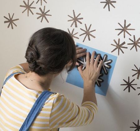 Ну сам процесс довольно прост, переносите рисунок на стену через трафарет, главное соблюдайте расстояние между рисунками.