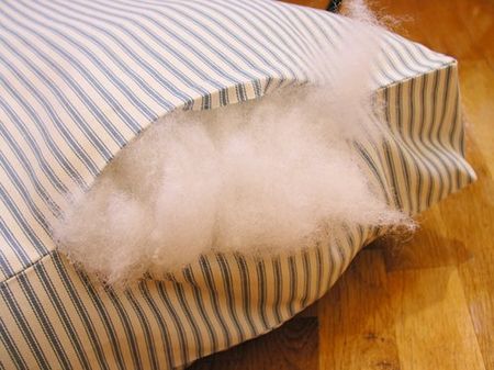 Теперь наполняем наш лежак и все, лежанка для собаки своими руками готова. Такую можно и подарить.