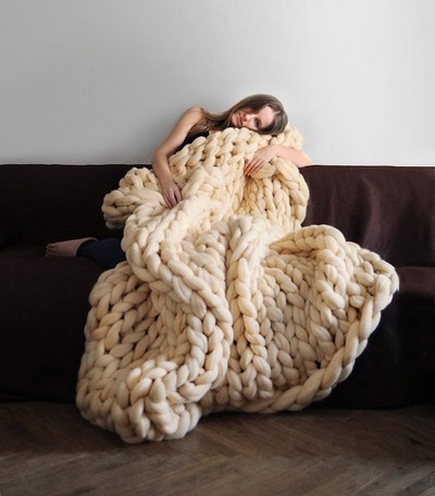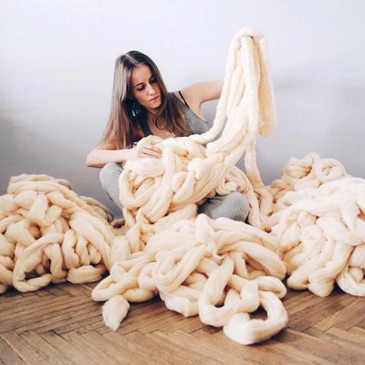 Эти замечательные покрывала, которые создает такая же очаровательная Анна Мо, изготовлены из натурального сырья — шерсти, без всяких наполнителей, и это объясняет их легкость и необычную мягкость. Визитной карточкой эксклюзивных изделий стали огромные петли, на готовом одеяле одна такая петля в высоту составляет 7 сантиметров. Для создания таких покрывал, Анне приходится пользоваться гигантскими спицами. Возможно, созданные Анной покрывала кого-то вдохновят, и он свяжет подобное чудо, чтобы преподнести близкому или своему любимому в качестве подарка. А пока, наслаждайтесь…