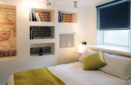 Если в вашей спальне необходимо было создавать ниши из гипсокартона для того, чтобы скрыть инженерные системы иди несовершенства архитектуры, то будет странно не воспользоваться такой возможностью и не обустроить и ниши для хранения. Книги и фото в рамках, шкатулки с украшениями и прочие мелочи будут не только всегда под рукой, но и украсят интерьер спальни.