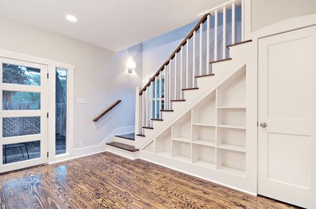Полезное пространство под лестницей непросто можно, а нужно использовать рационально. Первая мысль, которая приходит большинству домовладельцев с жилищем, в котором есть лестница – организации систем хранения. И в этом случае есть масса вариантов организации выдвижных ящиков или открытых полок, ячеек или комбинированных блоков для хранения.