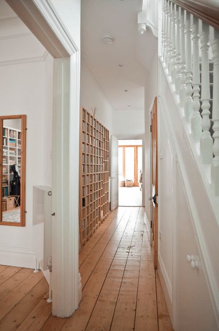Лестницы, как правило, находятся в прихожих и холлах частных домов. Поэтому логично будет разместить в пространстве под лестницей системы хранения для обуви и зонтов, верхней одежды и сумок.