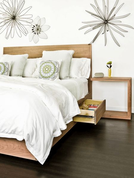 Даже если конструкция вашей кровати изначально не предусматривала наличие выдвижных ящиков – можно изготовить их дополнительно из материала, подобранного по цвету и фактуре к качеству спального места. В этом случае размер и вес ящиков будет зависеть от того, насколько часто вам придется их выдвигать и сколько усилий вы готовы для этого приложить.